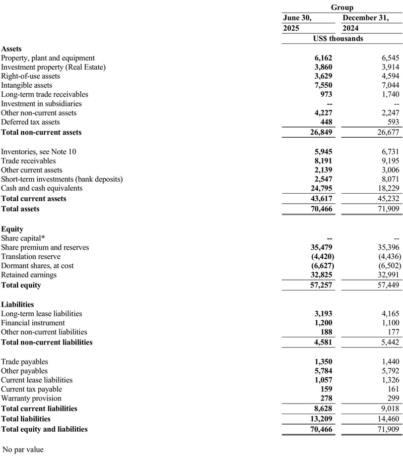 The Group reported revenues of US$ 15.3 million in H1 2025, minimal profit from operations of US$ 0.1 million, and a net loss of US$ 0.2 million, as compared to revenues of US$ 21.9 million, profit from operations of US$ 1.4 million and a net profit of US$ 1.0 million in H1 2024. The Group EBITDA for H1 2025 amounted to US$ 1.6 million, as compared to EBITDA of US$ 3.3 million in H1 2024.